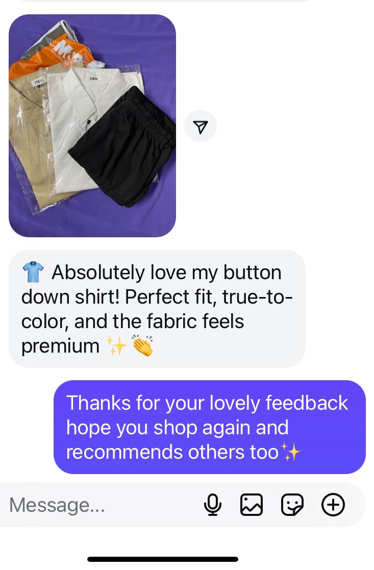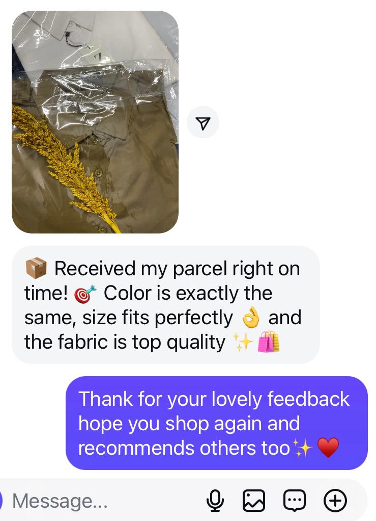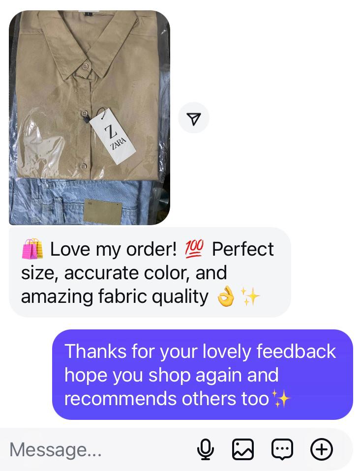 Satisfied with my First purchase from AKClothing! πβ¨ The quality is Best , and the shipping was super fast. π Highly recommend for anyone looking for stylish and reliable apparel! π