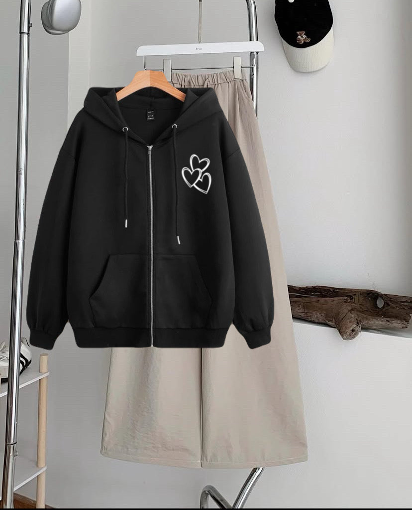 hoodie with, paired with flapper trousers. Premium fleece winter tracksuit for cozy, stylish, and comfortable casual wear.